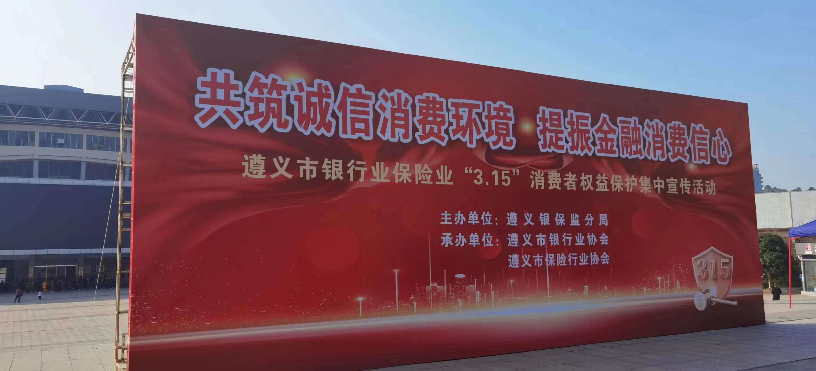 为全面落实2023年银保监会和贵州银保监局、遵义银保监分局工作安排部署,为进一步推进金融消费者权益保护工作,构建和谐健康的金融消费环境,3月15日上午,在汇川区体育文化广场,遵义市保险行业协会、遵义市银行业协会推动辖内保险机构集中开展以“共筑诚信消费环境 提振金融消费信心”为主题的“3·15”国际消费者权益日宣传活动。遵义银保监分局局党委书记、局长李云峰,党委委员、副局长何天佳等相关领导到现场进行指导。