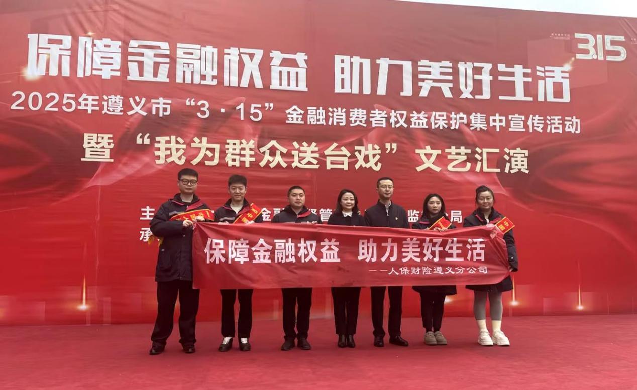 在遵义,人保财险遵义分公司积极参与由遵义金融监管分局主办的2025年“3•15”金融消费者权益保护教育集中宣传活动暨“我为群众送台戏”文艺汇演。活动现场,宣传人员通过悬挂宣传横幅、摆放宣传展架、张贴宣传海报、发放宣传资料等方式,向群众揭示和解析各类常见骗局的表现形式、手段和危害,帮助消费者有效识别、防范和明辨风险,远离侵害。