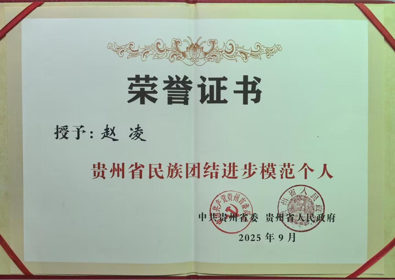 9月19日,贵州省第九次民族团结进步表彰大会在贵阳举行,人保财险遵义分公司员工赵凌荣获贵州省民族团结进步个人表彰。