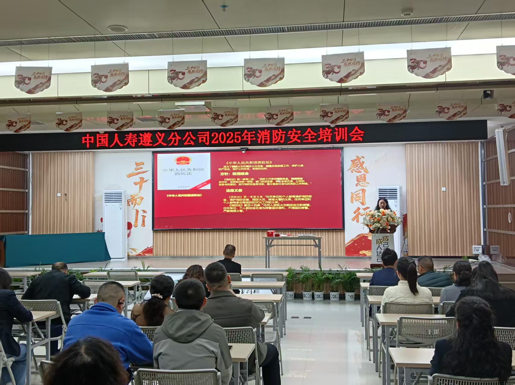为推动消防安全责任落实,提升公司员工消防安全意识和自防自救能力,在第34个全国消防宣传月到来之际,中国人寿遵义分公司于2025年11月7日特邀贵州隆盾安全技术服务有限公司的专业人员,为全体员工讲授了一堂以“全民消防、生命至上——安全用火用电”为主题的别开生面、让人警醒的消防安全培训课。