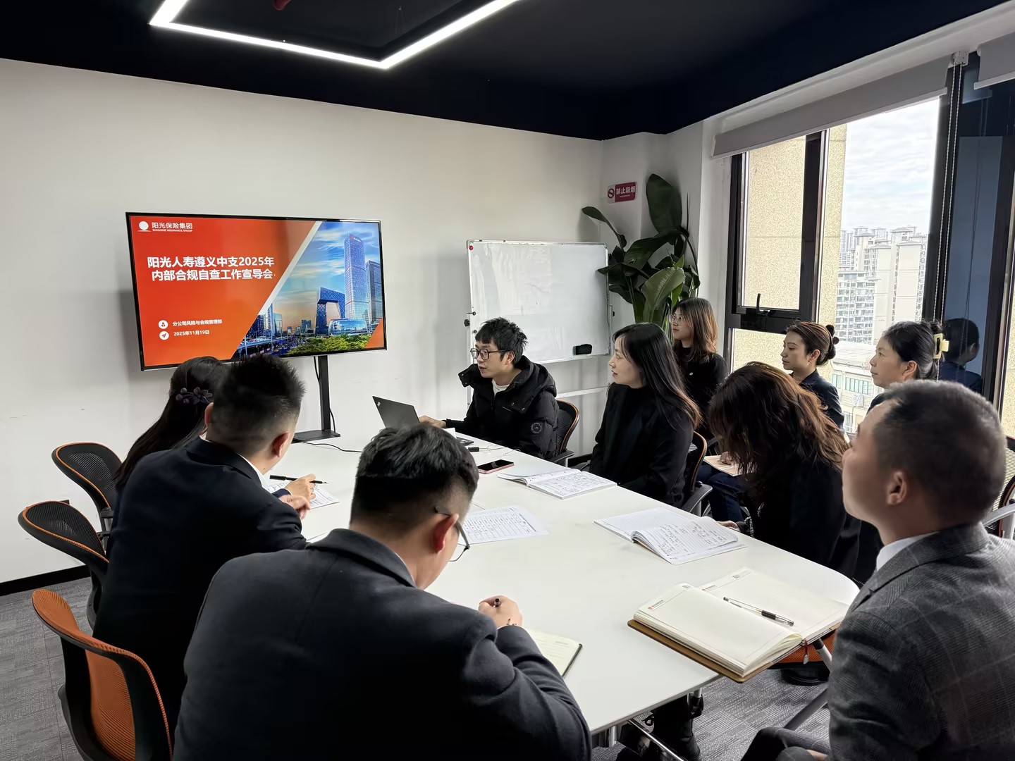 为深入贯彻监管要求及上级机构合规管理部署,切实强化下级机构合规经营意识,筑牢风险防控体系,11月19日,阳光人寿贵州分公司合规部来到阳光人寿遵义中支组织召开内部合规自查工作宣导会暨反洗钱管理现场检查沟通会。遵义中支全体员工参会。