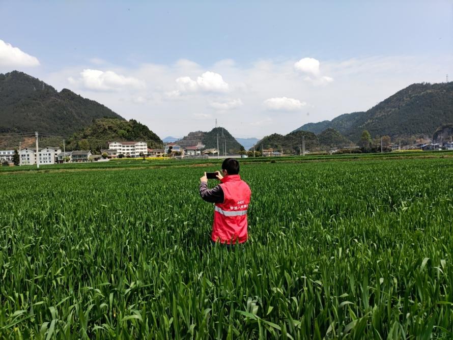 图为人保财险分公司开展小麦保险承保验标工作