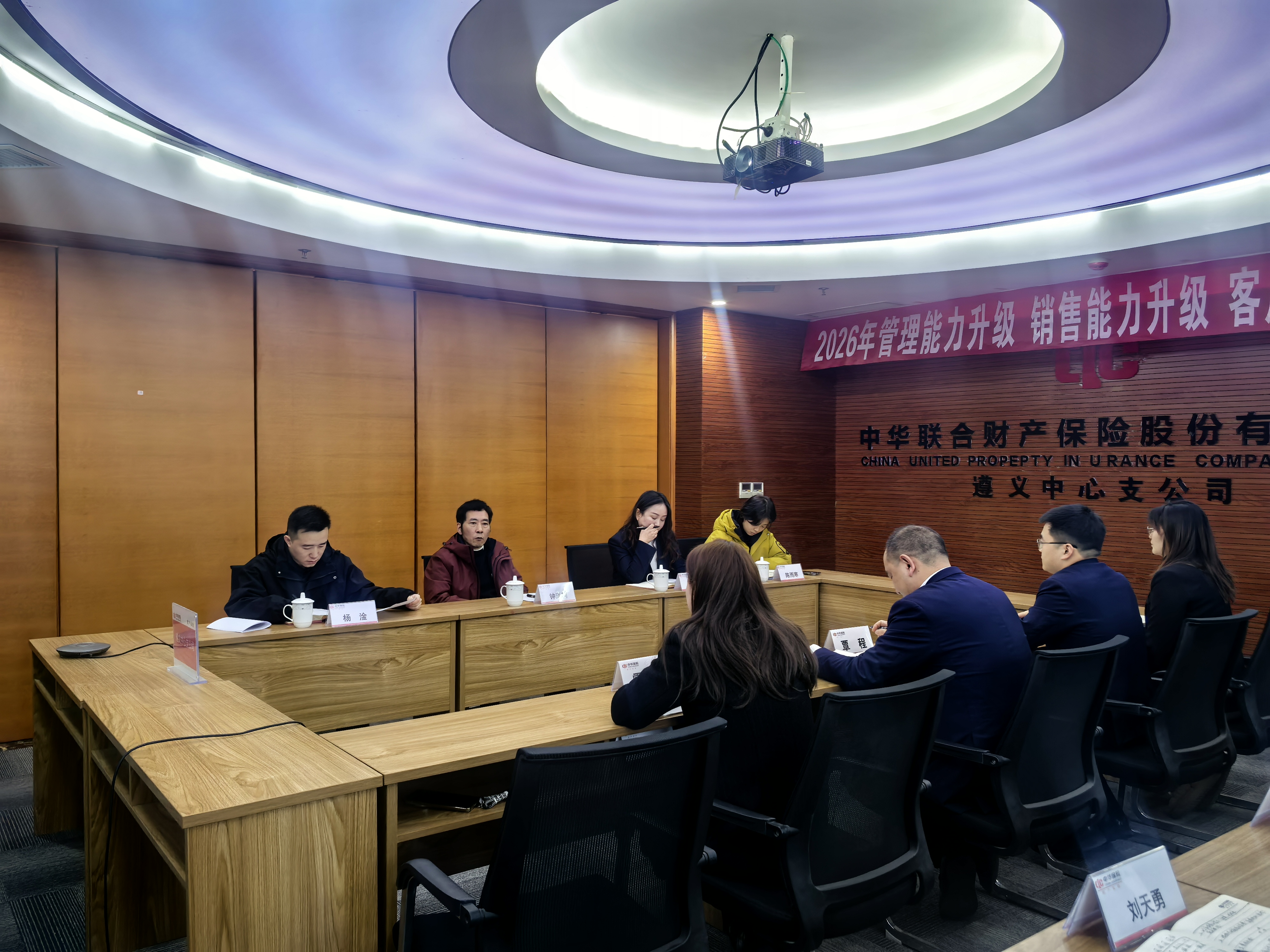1月22日,遵义市保险行业协会常务副会长钟泽轲一行四人赴中华财险遵义中心支公司开展调研指导。