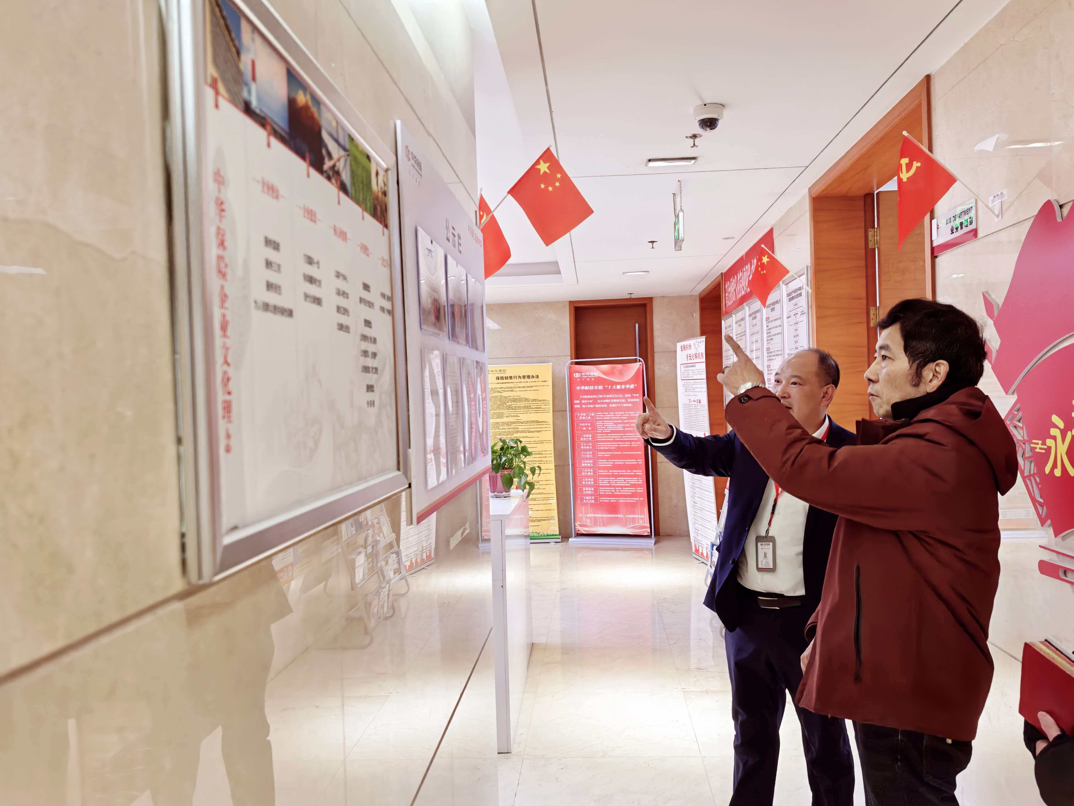 协会钟会长走进中华财险遵义中支各部门,与一线员工深入交流,详细了解公司在队伍建设、党建融合与日常经营等方面的实际情况。