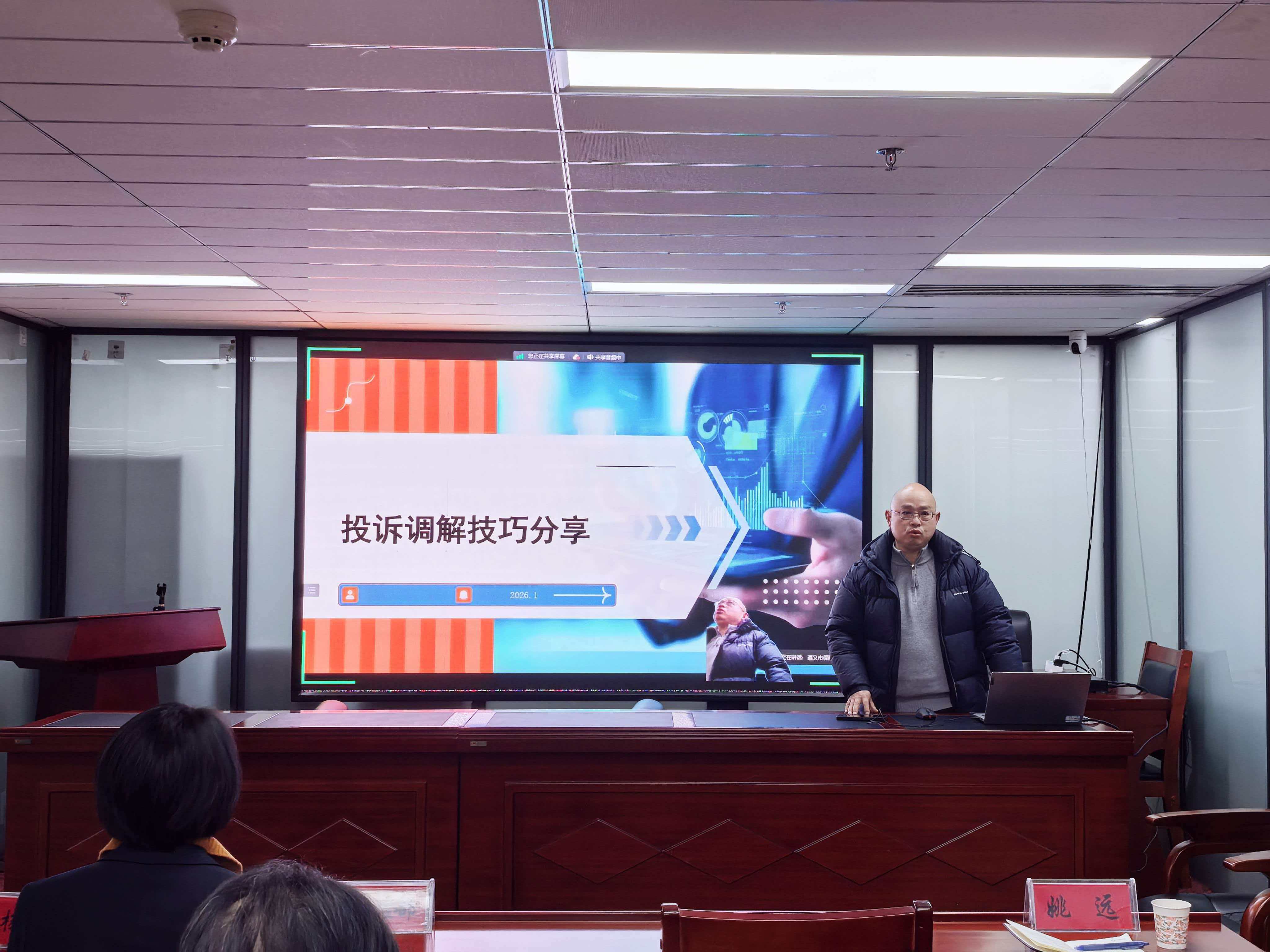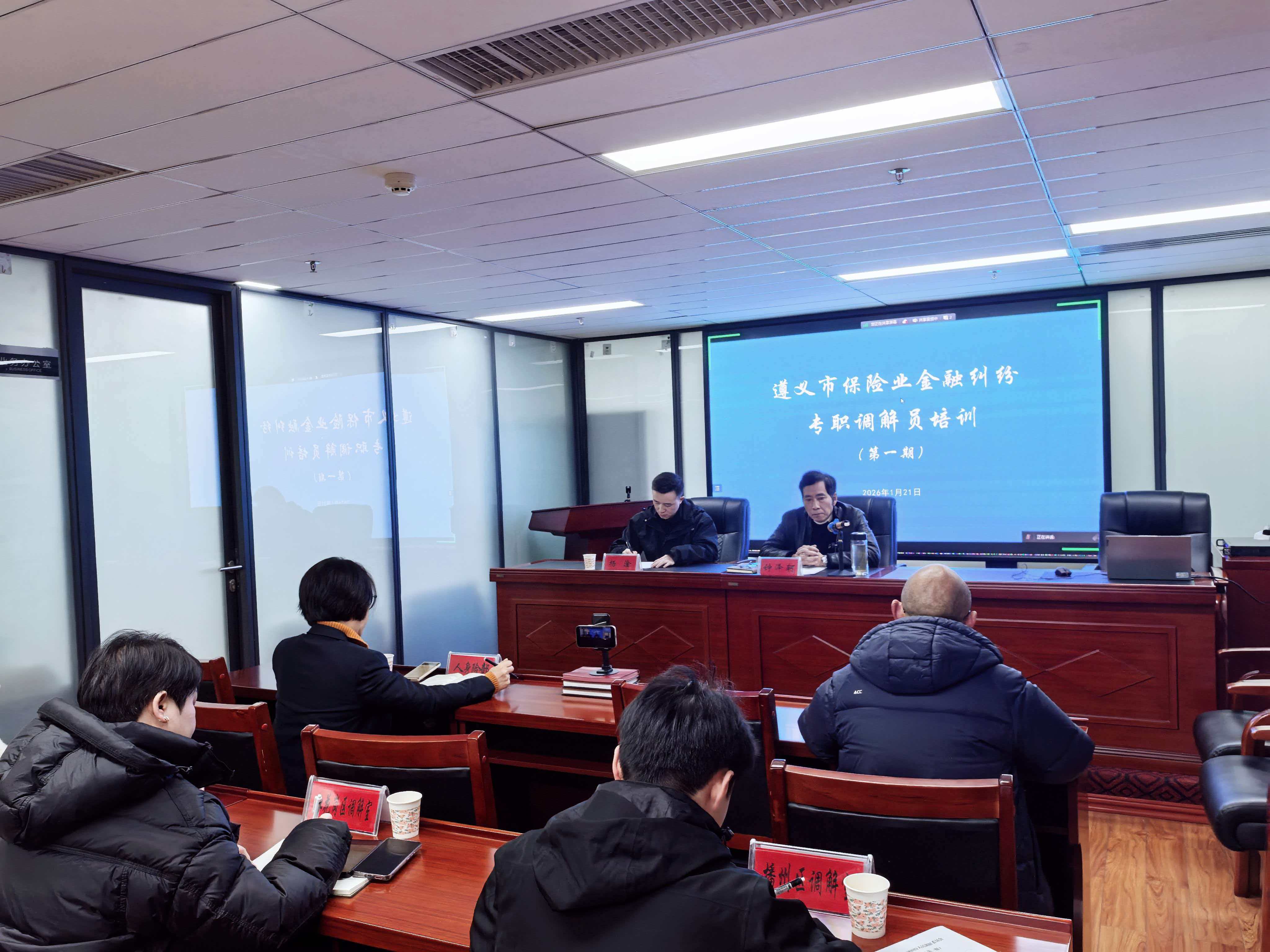 为进一步提升专职调解员业务能力,规范保险纠纷调解流程,推动全市保险行业金融纠纷调解工作高质量开展,2026年1月21日,遵义市保险行业协会成功举办了第一期调解员专题培训。本次培训采用“线下+线上”相结合的模式,并邀请太平人寿遵义中支实操经验丰富的行业专家姚远授课。遵义市三城区调解员现场参训,其余县、市(区)调解室调解员通过腾讯会议同步线上参训。