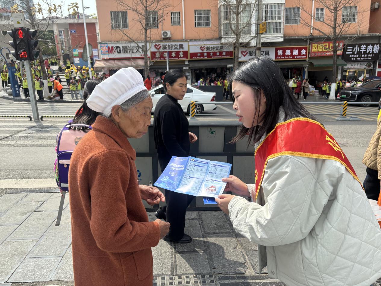 活动现场,工作人员身披宣传绶带,整齐有序布置宣传展台、摆放图文并茂的宣传折页及主题宣传展板,营造出浓厚的宣传氛围。针对小学生社会经验不足、易被诱导的特点,工作人员用生动通俗的语言、趣味易懂的案例,讲解非法网贷、校园套路贷的危害,拆解“无抵押、低利率”的借贷陷阱,引导学生树立理性消费观,远离非法金融活动。同时,针对老年群体金融知识薄弱、易遭遇养老诈骗的现状,工作人员重点普及了养老诈骗、网络诈骗、反洗钱等相关知识,细致拆解“高息养老投资”“温情服务诱骗”等常见骗局套路,提醒老年人警惕陌生来电、拒绝“保本高息”诱惑,守护好自己的养老钱。