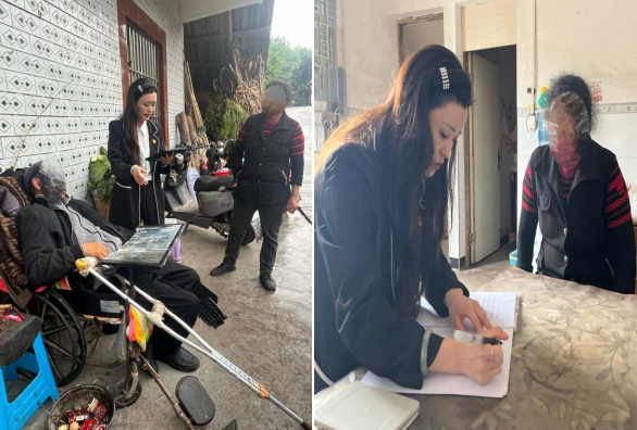 一路上,大雾笼罩山路,视线模糊难行。公司工作人员克服天气与路况双重阻碍,历经数小时奔波抵达客户家中,首先亲切询问客户身体与生活状况,送上公司关怀与问候,安抚家属情绪。随后在客户轮椅前细致办理业务,逐一核对保单与身份信息,耐心讲解办理流程与领取规则,规范高效完成信息核验、资料签署、业务受理全流程,彻底解决了客户的烦心事。